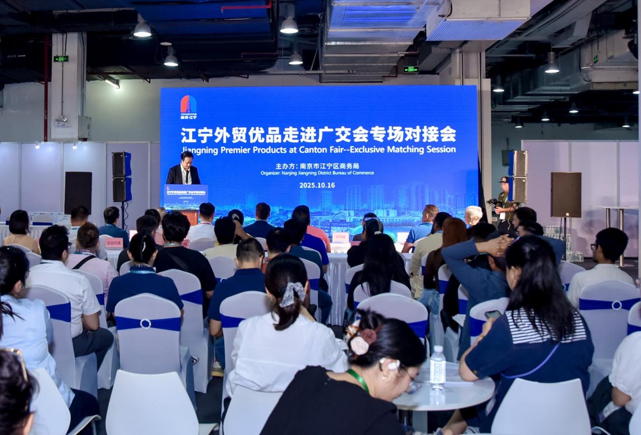 展会期间,江宁外贸优品专区企业凭借优质产品与技术吸引广泛关注,累计接待来自50多个国家和地区意向客商近千人。区商务局更精准搭建国际合作桥梁,特别邀请阿根廷、印尼、马来西亚等海外交易团与企业面对面对接,为跨境合作铺路搭桥。在南京市交易团的支持下,“江宁外贸优品走进广交会专场对接会” 成功举办,进一步聚焦供需匹配,推动合作落地。